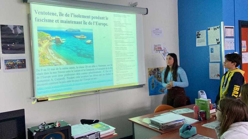 Presentazione degli alunni ambasciatori italiani sulla Cittadinanza Europea.al Collège du Lazaro